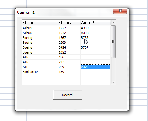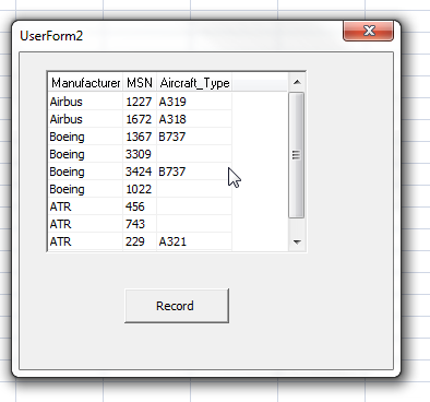 5 - Then, when he is done, he clicks the "Record" CmdButton and I save the whole grid in the same Excel sheet to update values.
